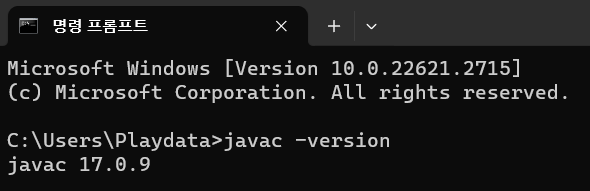 - 위의 그림과 같이 버전명이 나온다면 자바 설정이 완료 되었다.