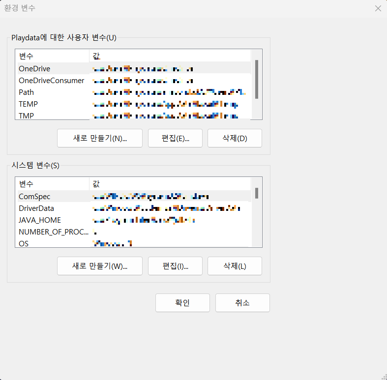 - 또 하나의 할 일이 있는데 시스템 변수의 Path라는 변수명을 가진 변수를 클릭하고 편집을 누른다.