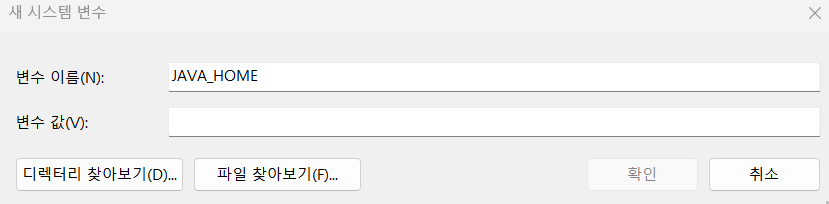 - 여기서 변수 이름을 JAVA_HOME으로 설정한다. (관례적으로 이름을 JAVA_HOME이라 한다.)