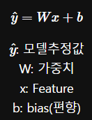 - Feature에 곱해지는 가중치(weight)들은 각 Feature가 Target에 얼마나 영향을 주는지 영향도가 된다.